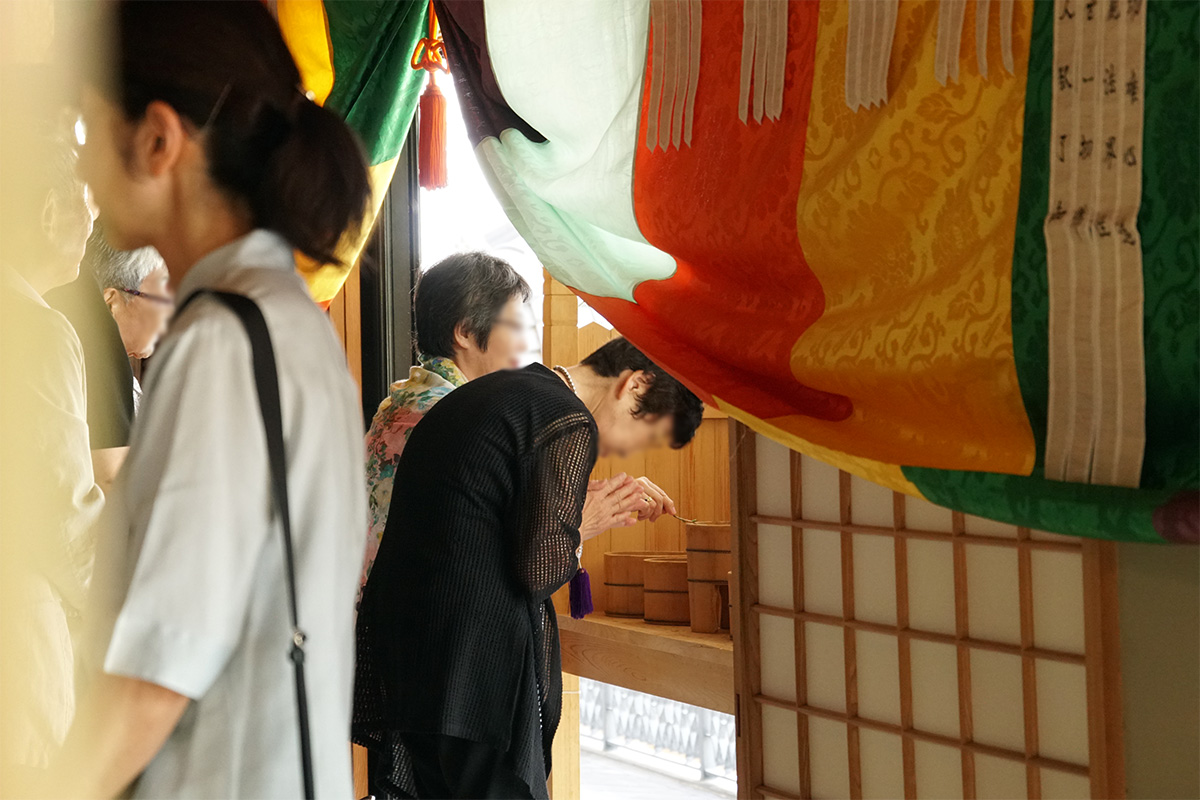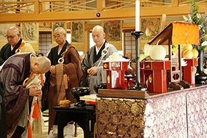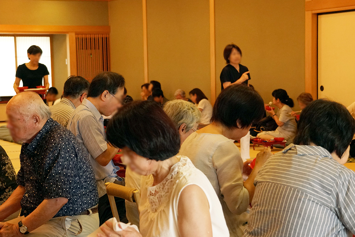 檀信徒に当寺にお集まり頂き、各家の先祖代々の霊位を供養する夏の法要です。お集まり頂いた皆様には、清らかな精進料理をお召し上がり頂いた後、本堂にて行われる施餓鬼法要に御参加頂きます。法要では10名以上のご寺院様にご出頭頂き、先祖供養の法要を営みます。
